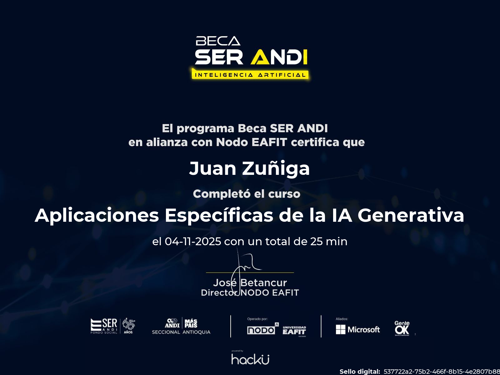 • Certificado: