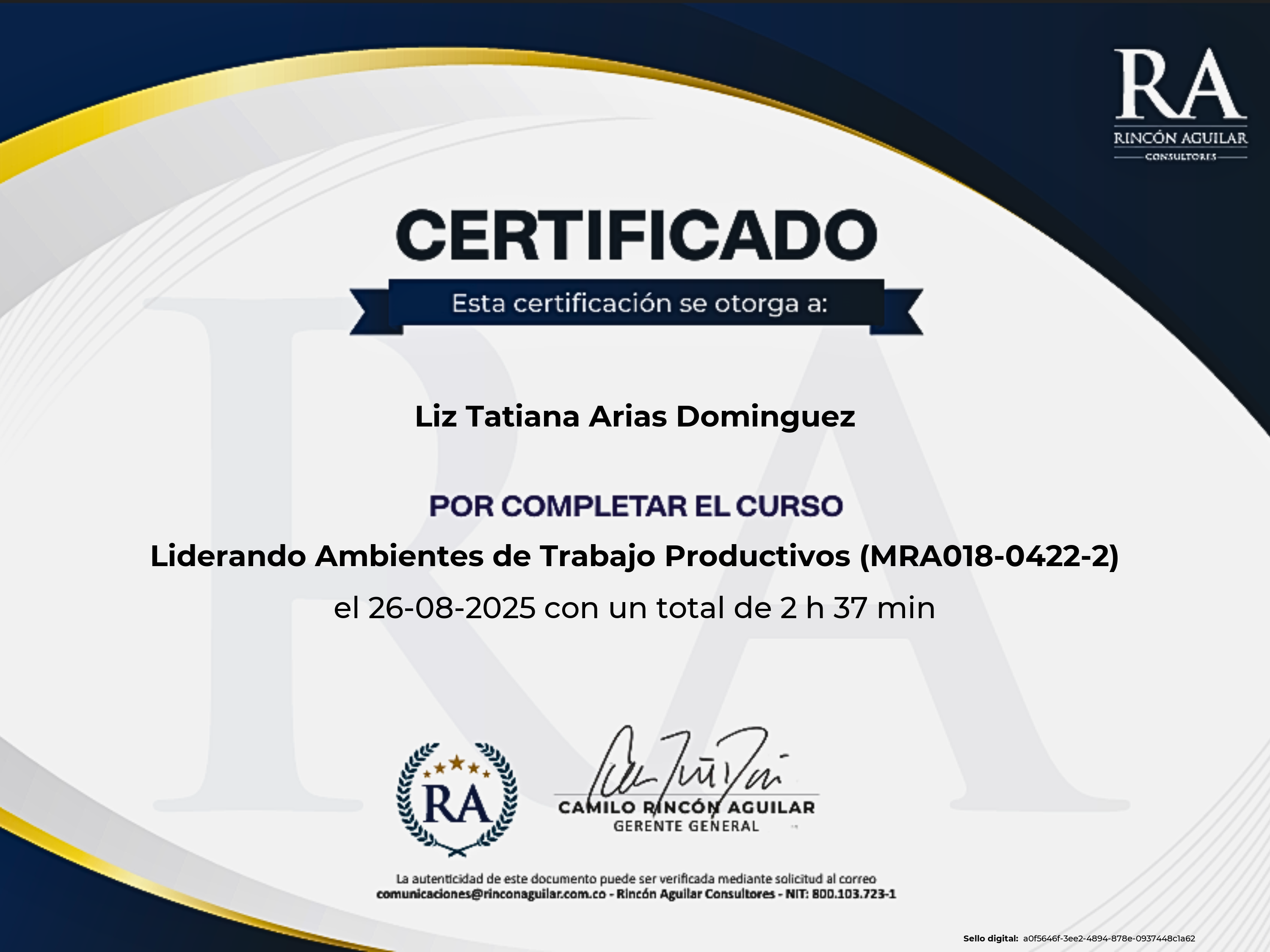 Liderando Ambientes de Trabajo Productivos (MRA018-0422-2)